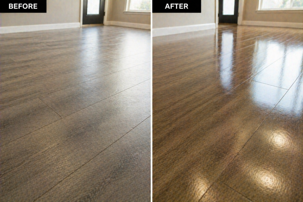 Traditional refinishing involves sanding the floor down to bare wood, while our process restores and protects without that level of disruption.